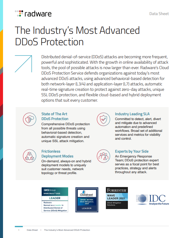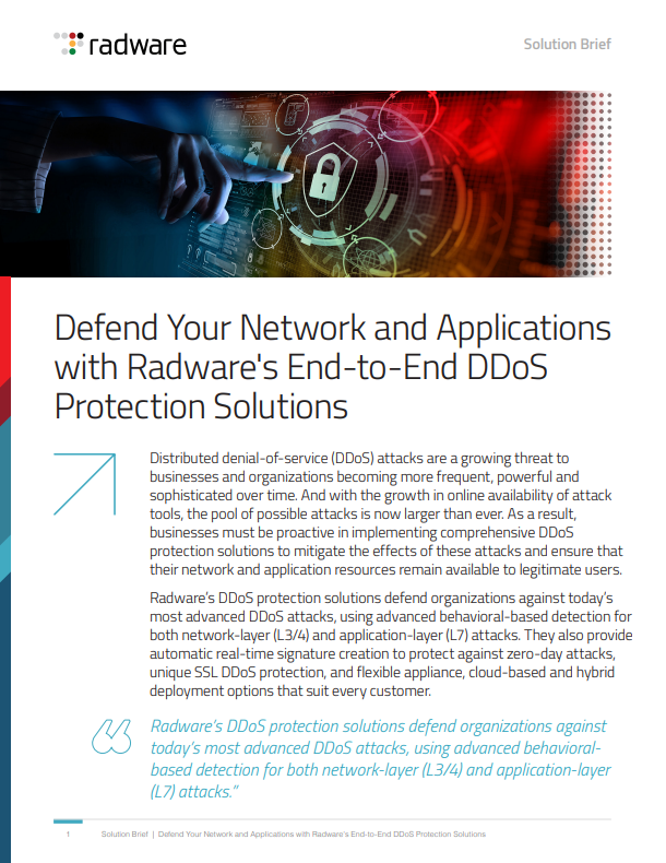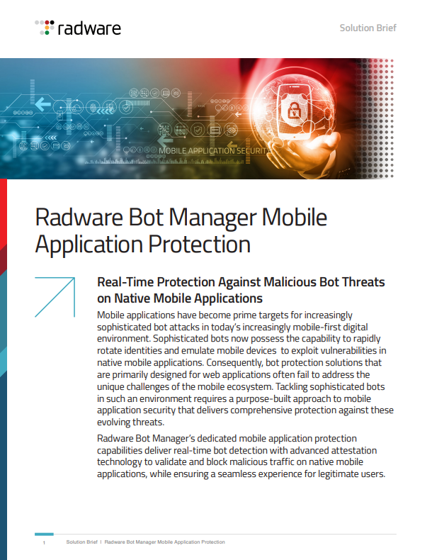 Brochures DDoS Protection Solution Brief Radware Cloud DDoS Protection Service DataSheet Radware Bot Manager for Mobile App Protection The Rise in Web DDoS Attacks Solution Brief